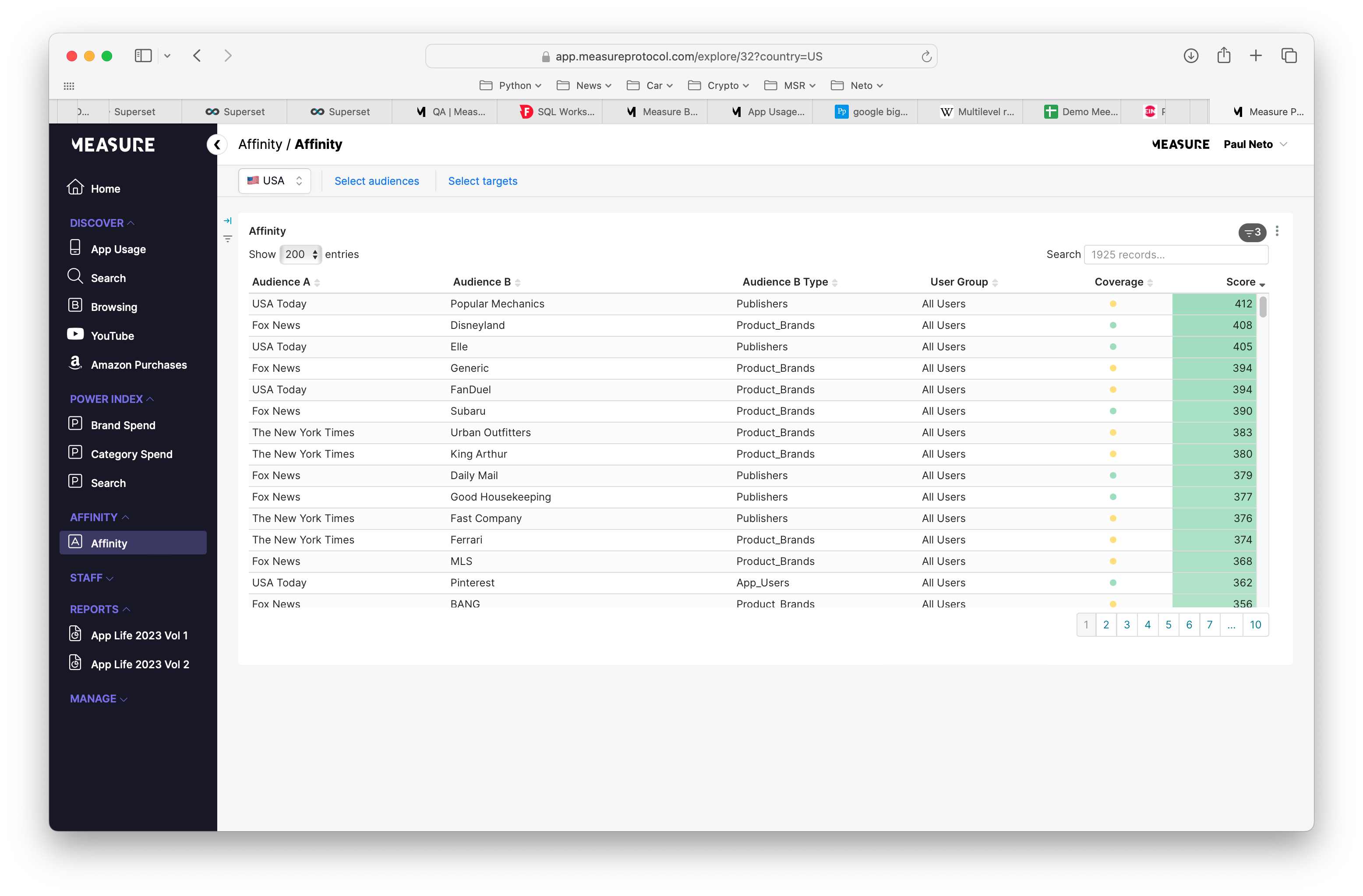 Measure’s Affinity is the only product that captures every user level digital touchpoint and provides a consolidated affinity score. You can finally see a true indication of affinity that includes search, purchase, web browsing, social engagement and more. Leverage your scores to both beat the competition and deepen your intelligence on your audience's preferences for strategy and planning purposes.